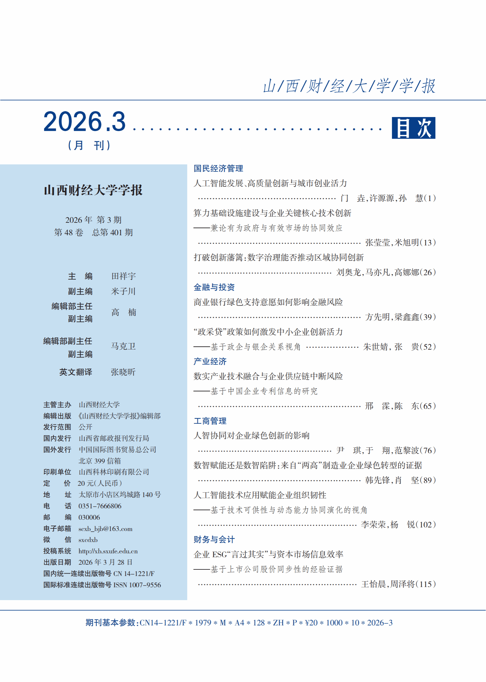 学报 2026年 第3期 目录